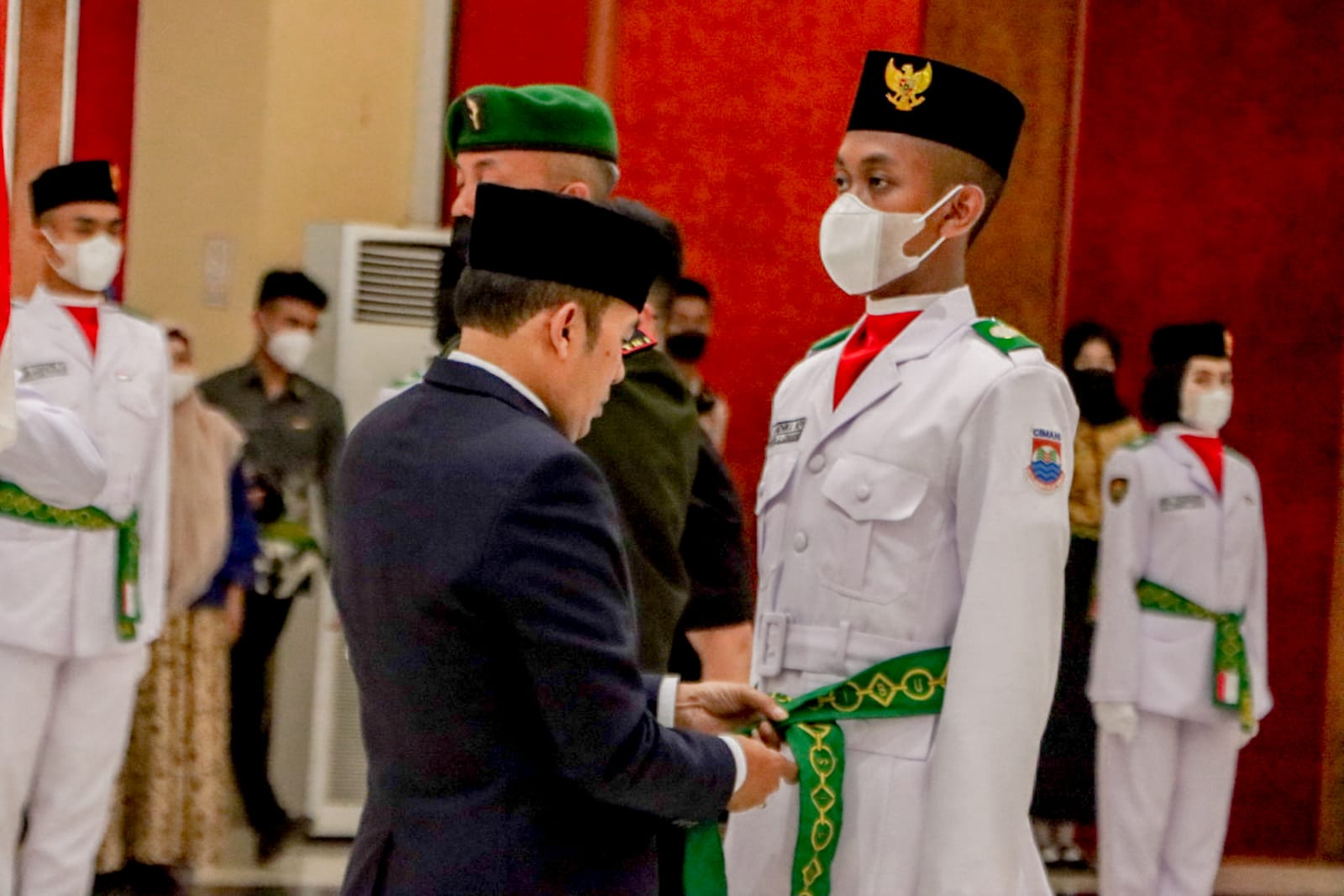CIMAHI – metropaginews.com|| Pelaksana Tugas (Plt.) Wali Kota Cimahi Let. Kol. (Purn) Ngatiyana mengukuhkan 35 orang siswa SMA/SMK/Sederajat menjadi anggota Pasukan Pengibar Bendera Pusaka (Paskibraka) Tingkat Kota Cimahi Tahun 2022 di Cimahi Technopark, Senin (15/08). 35 orang anggota Paskibraka Kota Cimahi ini akan bertugas sebagai pengibar duplikat bendera pusaka sang saka merah putih pada Upacara Peringatan Hari Ulang Tahun Kemerdekaan Republik Indonesia ke-77 Tingkat Kota Cimahi.