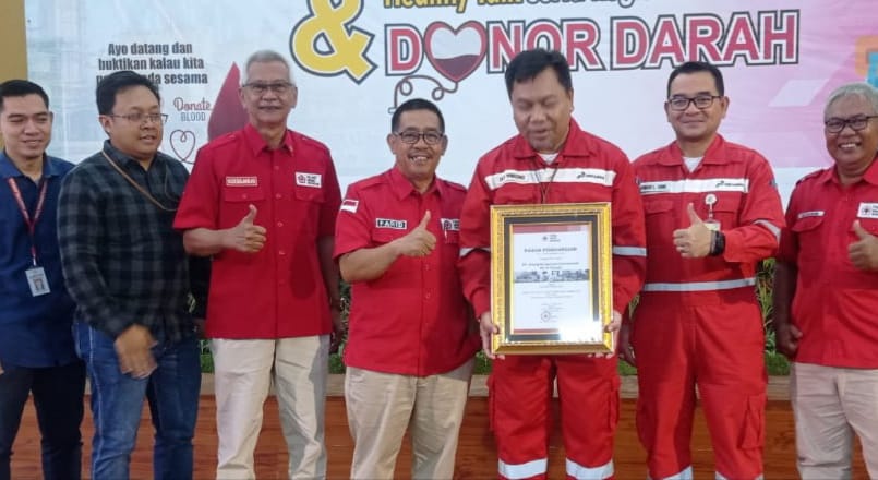 CILACAP – METROPAGINEWS.COM || Palang Merah Indonesia (PMI) Kabupaten Cilacap menyerahkan penghargaan donor darah kepada PT Kilang Pertamina Internasional (KPI) RU IV Cilacap, Selasa (13/6/2023).