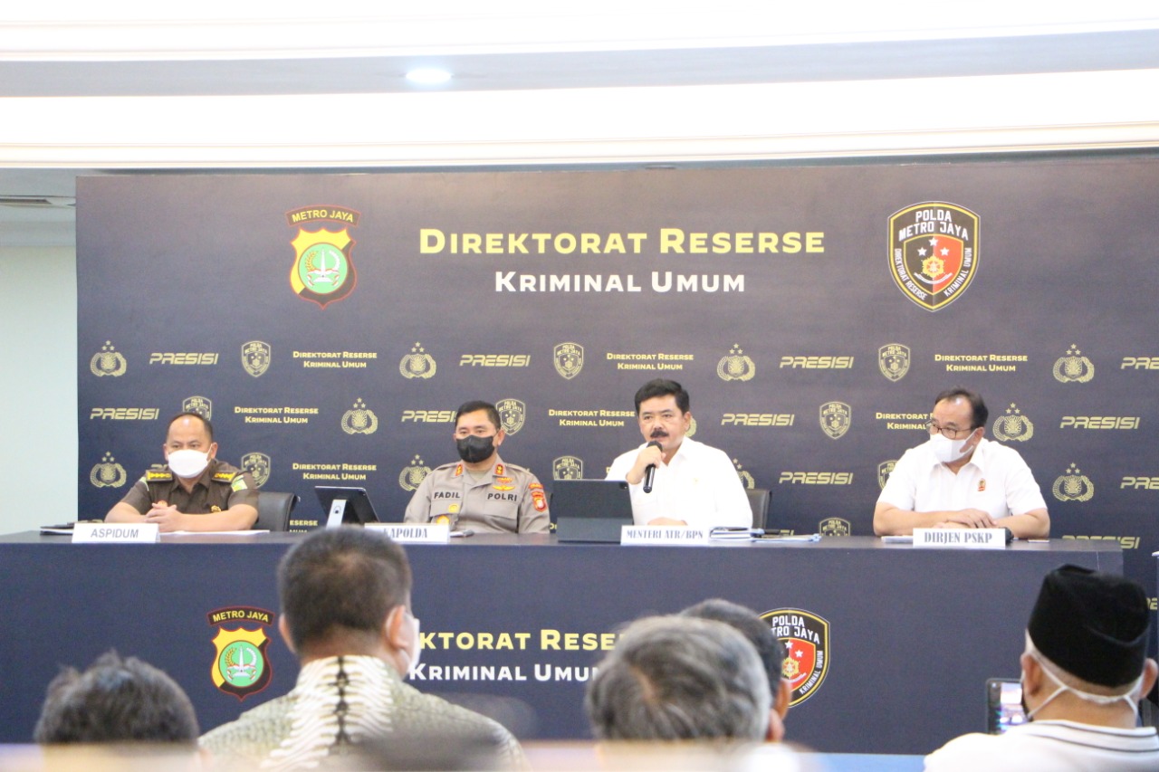Pada kesempatan tsb Kapolda Metro Jaya Irjen Pol. Dr. Mohammad Fadil Imran Msi didampingi Menteri Agraria dan Tata Ruang /Badan Pertahanan Nasional (ATR/BPN) Hadi Tjahjanto di Mapolda Metro Jaya.