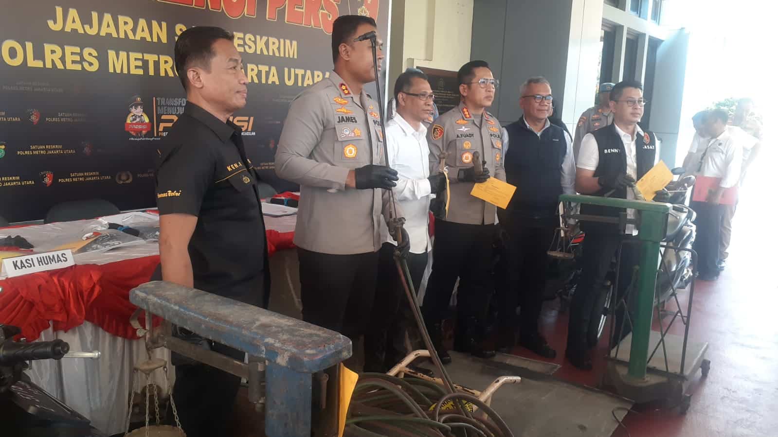 JAKARTA – METROPAGINEWS.COM || Polisi menangkap lima pelaku pencurian pelat besi kolong tol dekat Jakarta International Stadium (JIS) tepatnya di RT 10, RW 08, Papanggo, Tanjung Priok, Jakarta Utara.