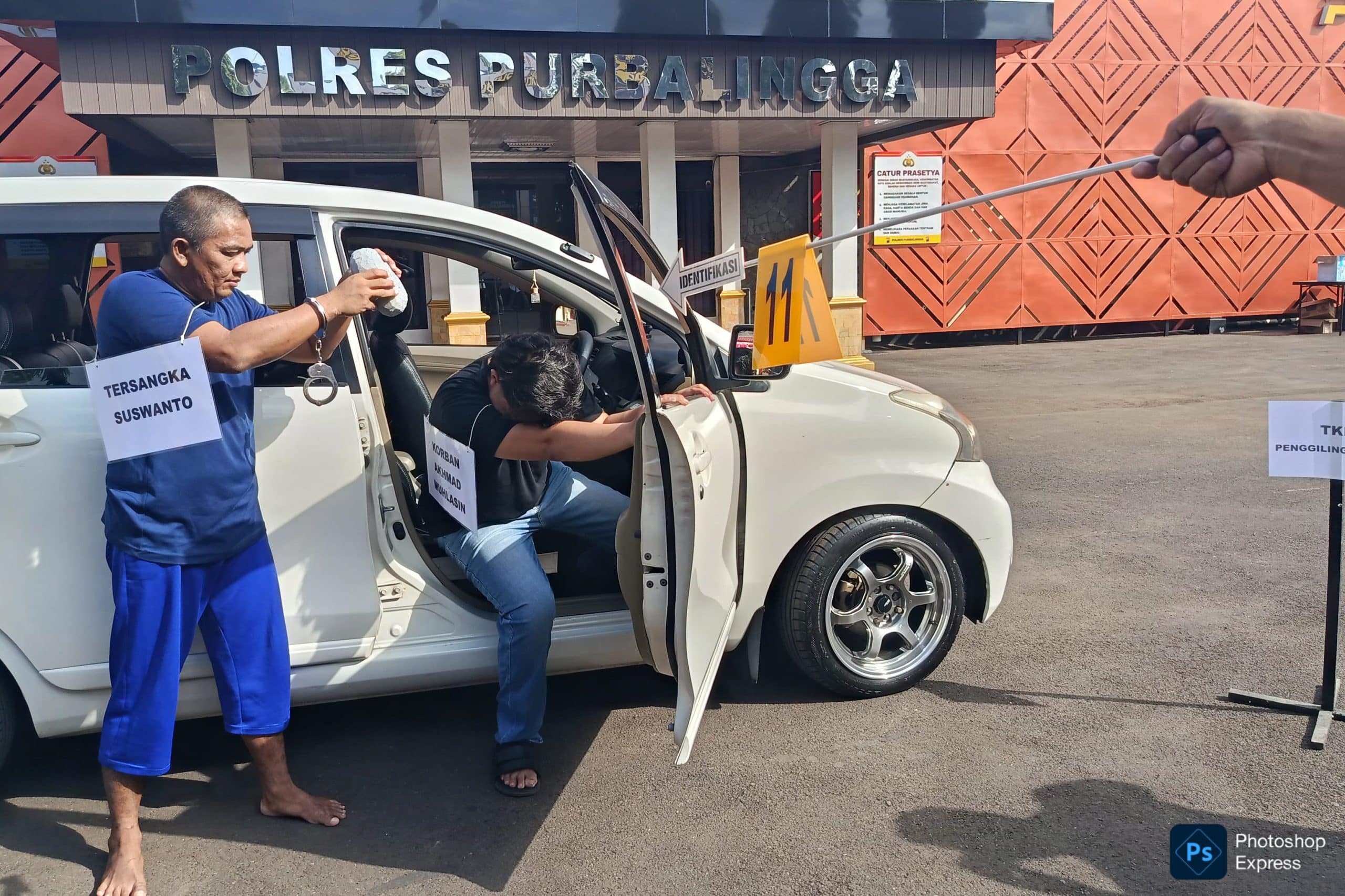 Reka ulang dilaksanakan di halaman Mapolres Purbalingga, yang telah disetting menyerupai lokasi kejadian, Jumat (15/8/2025). Kegiatan dihadiri Kasat Reskrim Polres Purbalingga AKP Siswanto, tim dari Kejaksaan Negeri Purbalingga dan penasehat hukum tersangka.