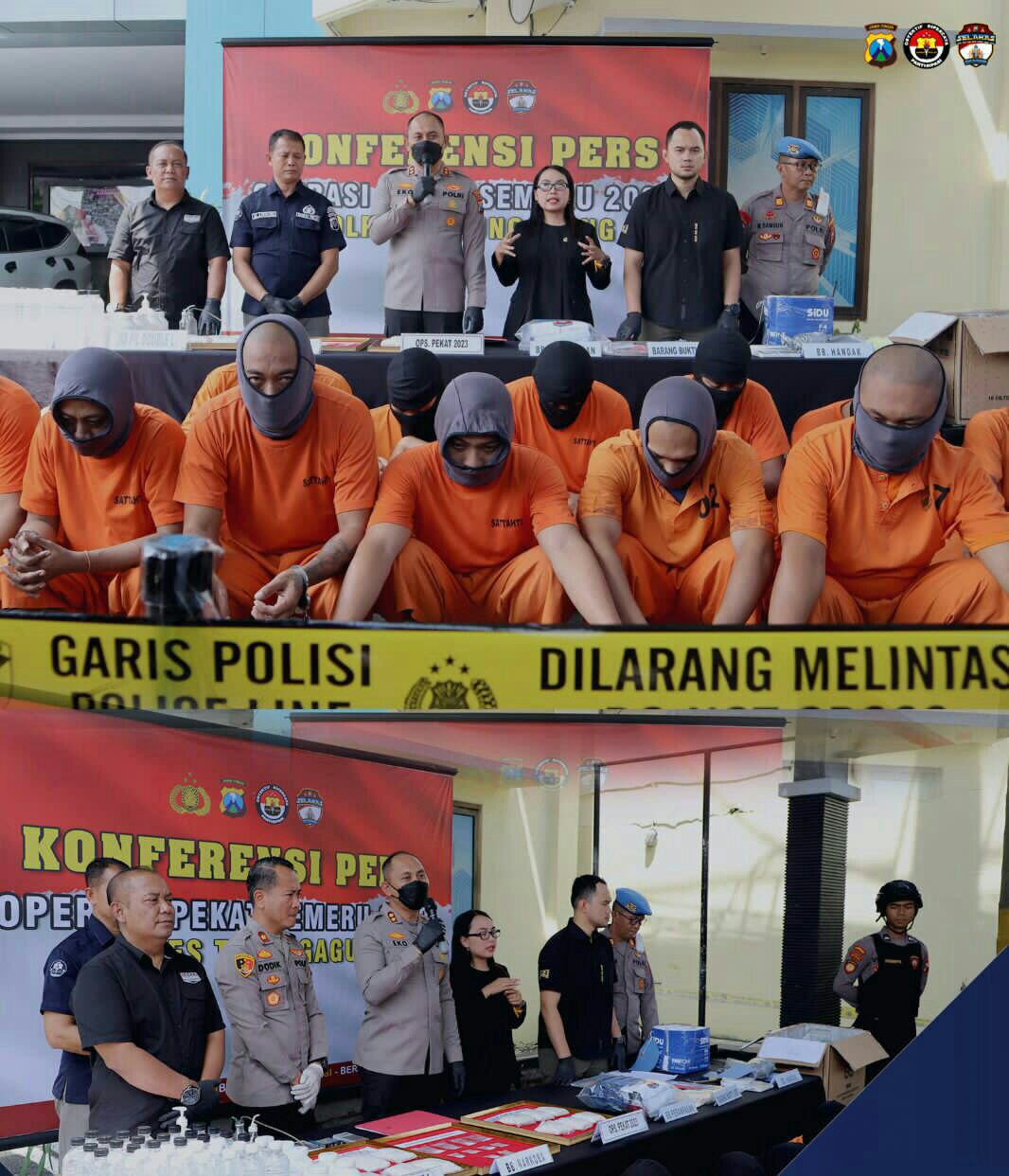 “Dari 189 kasus ini 36 kasus dalam proses Sidik dan 162 kasus dalam Proses Tipiring,” terang Kapolres Tulungagung AKBP Eko Hartanto, SIK, MH saat memimpin Konferensi Pers di halaman Mapolres, yang di dampingi Wakapolres Tulungagung, Kompol Dodik Tri Hendro Siswoyo, Kasat Reskrim AKP Agung Kurnia Putra, Kasat Resnarkoba AKP Didik Riyanto, Kasi Propam AKP M. Samsun, dan Kasi Humas Polres Tulungagung Iptu Anshori, Kamis (30/03/2023).