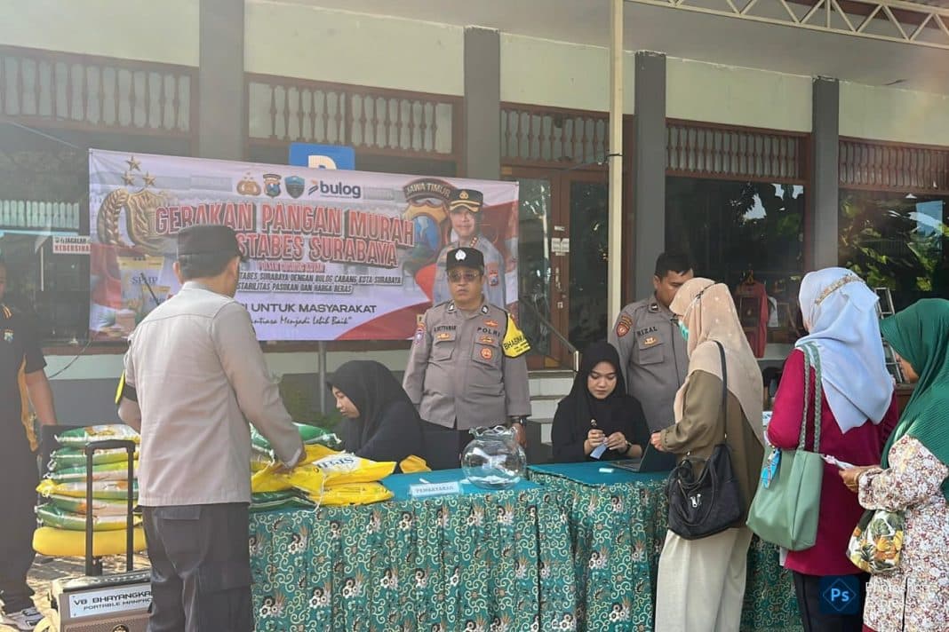 SURABAYA – METROPAGINEWS.COM || Gerakan pangan murah yang digelar Polsek Gunung Anyar Polrestabes Surabaya bersama Perum Bulog disambut antusias ratusan warga masyarakat, Jumat (8/8/25).