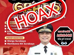 “Saya pastikan itu hoaks. Pemkot Surabaya tidak ada acara seperti itu. Ini ulah tangan-tangan yang tidak bertanggung jawab,” tegas Kepala Dinkominfo Kota Surabaya M. Fikser, Sabtu (27/5/2023).