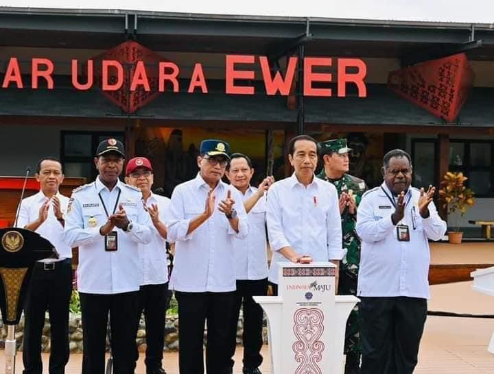 ASMAT- METROPAGINEWS.COM || Pengembangan Bandar Udara Ewer yang berada di Distrik Agats, Kabupaten Asmat, Provinsi Papua Selatan ditujukan untuk melayani kebutuhan transportasi masyarakat di Kabupaten Asmat. Pernyataan ini disampaikan Presiden Joko Widodo ketika meresmikan pengembangan Bandar Udara Ewer, pada Kamis 6 Juli 2023.