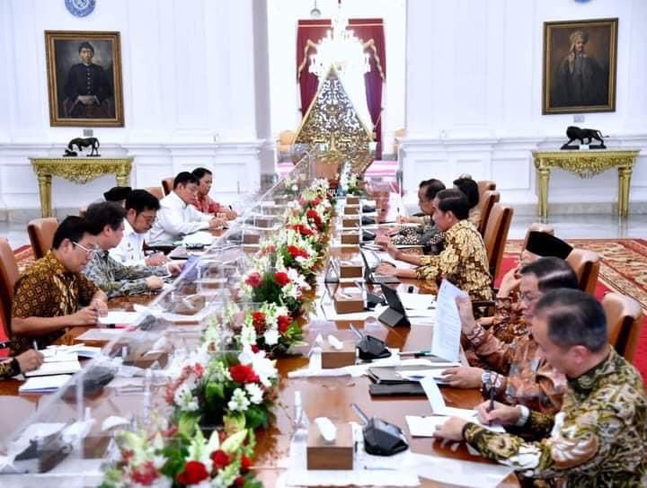 Presiden Joko Widodo memimpin rapat terbatas bersama jajarannya di Istana Merdeka, Jakarta, pada Kamis, 27 April 2023. Dalam rapat tersebut, Presiden meminta pengurangan ketergantungan terhadap pupuk kimia dengan meningkatkan penggunaan pupuk organik bagi para petani.