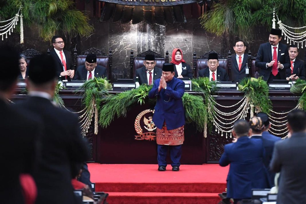 JAKARTA – METROPAGINEWS.COM ll Persiden Prabowo Subianto dalam pidato perdananya di hadapan Sidang Paripurna MPR RI usai dilantik menjadi Presiden periode 2024-2029, di Gedung Nusantara MPR-DPD-DPR RI, Senayan, Jakarta, pada Minggu (20/10/2024) pagi. Presiden Prabowo Subianto
