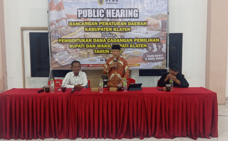 Anggota DPRD Klaten dari fraksi Partai Demokrasi Indonesia Perjuangan (PDI-P) Joko Siswanto menggelar Public Hearing terkait Rancangan Peraturan Daerah (RAPERDA) Pembentukan Dana Cadangan Pemilihan Bupati dan Wakil Bupati Klaten Tahun 2030 bersama warga masyarakat Kecamatan Jatinom. Kegiatan yang bertujuan untuk mendengar pendapat masyarakat ini digelar di Gedung Serbaguna Candra Kirana Kecamatan Jatinom, Kabupaten Klaten pada Jumat malam (27/03/2026).