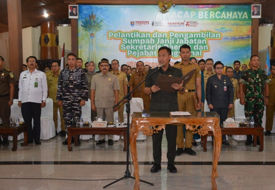 CILACAP – METROPAGINEWS.COM II Bupati Cilacap, Syamsul Auliya Rachman, melantik dan mengambil sumpah/janji Sadmoko Danardono sebagai Sekretaris Daerah (Sekda) definitif Kabupaten Cilacap, Senin (15/9/2025). Sebelumnya, Sadmoko menjabat sebagai Penjabat (Pj) Sekda.