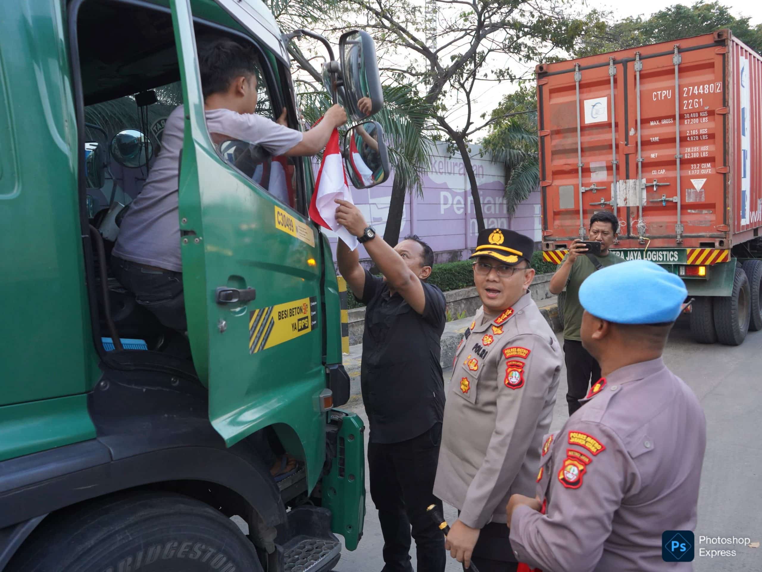 Kegiatan yang dimulai pukul 17.10 WIB itu menyasar sopir kontainer, pengemudi truk, dan pengendara roda dua yang melintas di Jalan RE Martadinata, tepatnya di depan Pos 1 Pelabuhan Tanjung Priok. Para pengemudi tampak antusias menerima bendera sebagai simbol kecintaan terhadap tanah air dan partisipasi menyemarakkan bulan kemerdekaan.