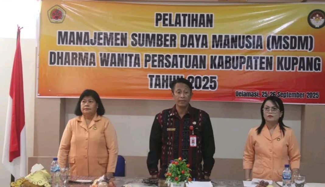 OELAMASI – METROPAGINEWS.COM || Sekretaris Daerah (Sekda) Kabupaten Kupang, Mateldius S.J. Sanam, secara resmi membuka kegiatan Pelatihan Sumber Daya Manusia Dharma Wanita Persatuan Kabupaten Kupang Tahun 2025 yang digelar di Aula Rumah Jabatan Bupati Kupang, Kamis (25/9/2025).