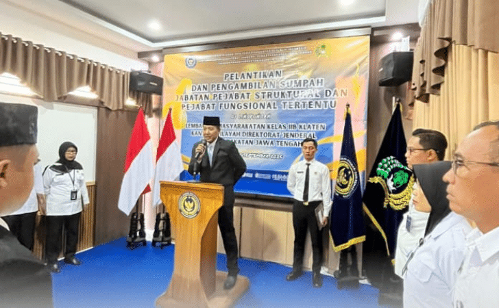 Acara pelantikan ini dihadiri oleh seluruh jajaran pejabat dan staf Lapas Klaten, serta disaksikan oleh perwakilan dari instansi terkait.