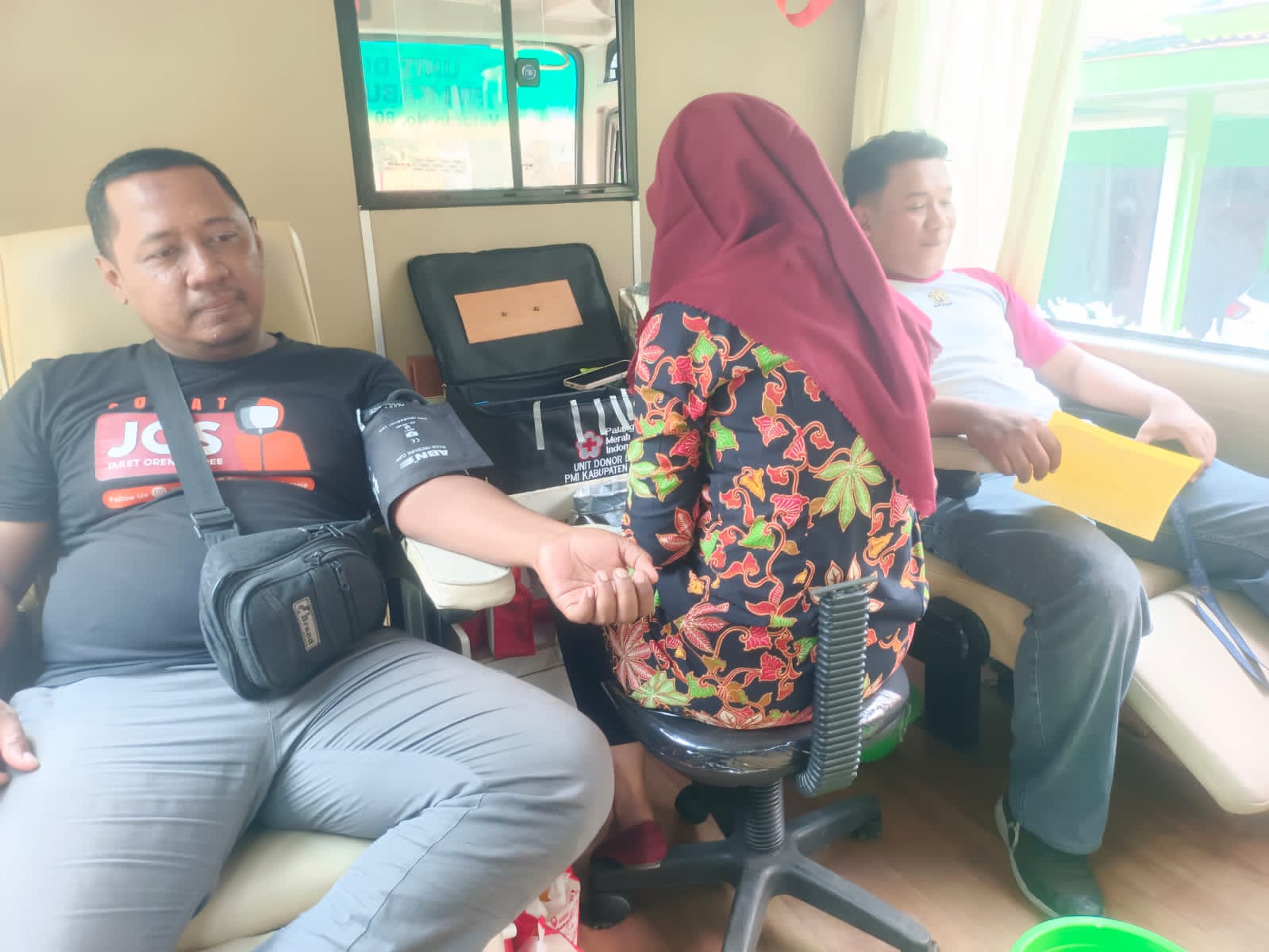 Acara yang di laksanakan sampai pukul 11 siang tadi setidaknya ada kurang lebih 35 pendonor baik laki laki dan perempuan.