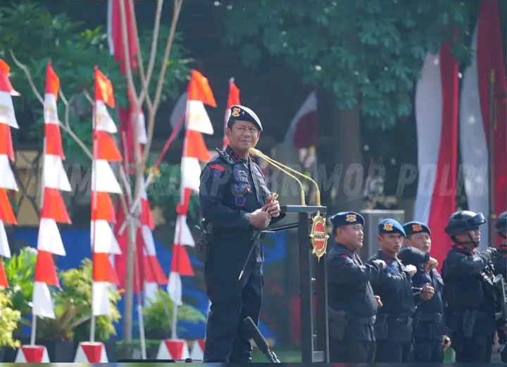 Dalam Kesempatan ini, Wadankorbrimob Polri Menyampaikan Sambutan Dankorbrimob Polri Komjen Pol. Imam Widodo Bahwa Pada Bulan November Rakyat Indonesia Merayakan Pesta Demokrasi Pilkada yang Berlangsung tanggal 27 November 2024, ini Merupakan suatu Momen Strategis Bagi Kelanjutan Pembangunan masa depan Bangsa Indonesia.