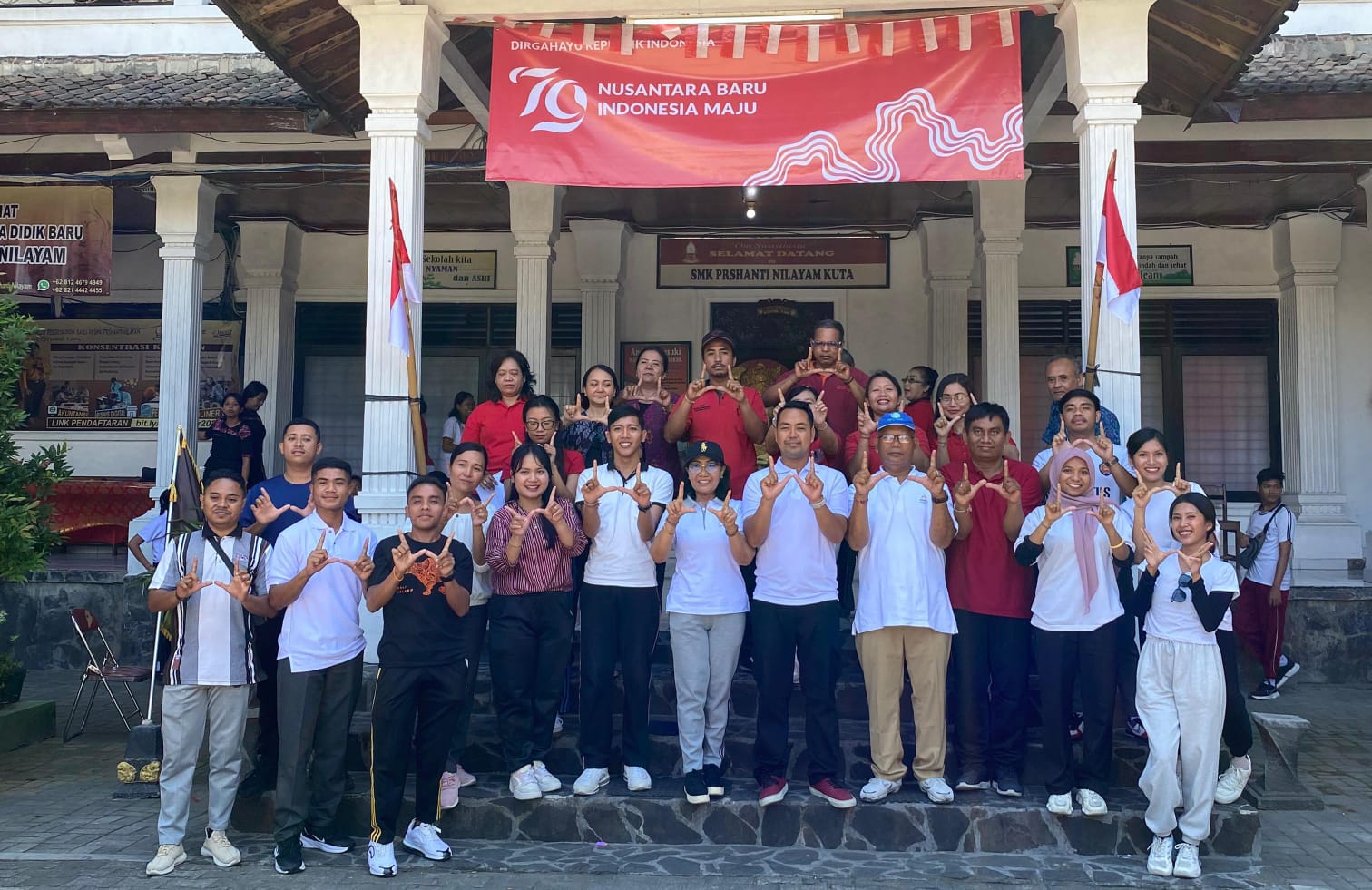 DENPASAR — METROPAGINEWS.COM || Dalam rangka menyambut Hari Ulang Tahun (HUT) ke-79 Kemerdekaan Republik Indonesia, SMK Prshanti Nilayam di Kecamatan Kuta, Kabupaten Badung, Provinsi Bali, mengadakan kegiatan jalan santai bersama pada Jumat (16/08/2024).