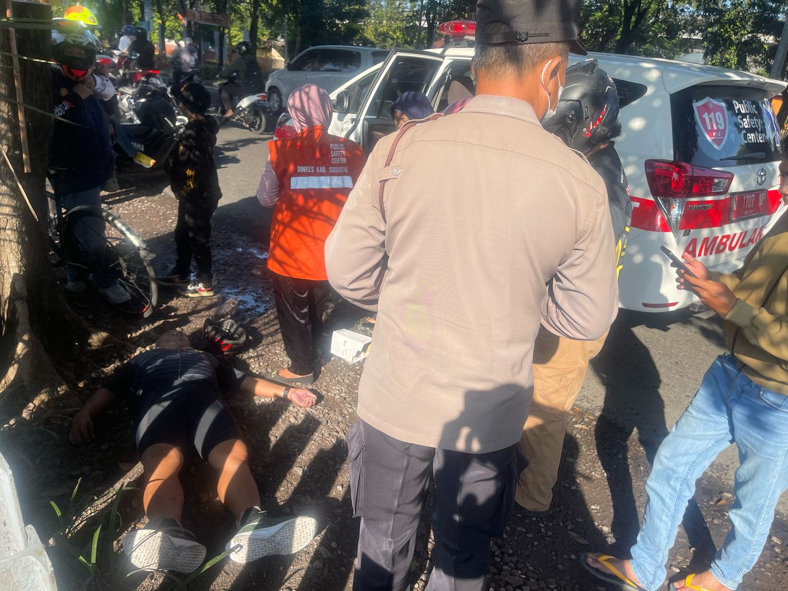Seketika itu pula pengendara sepeda angin langsung terjatuh dan korban mengalami luka berat