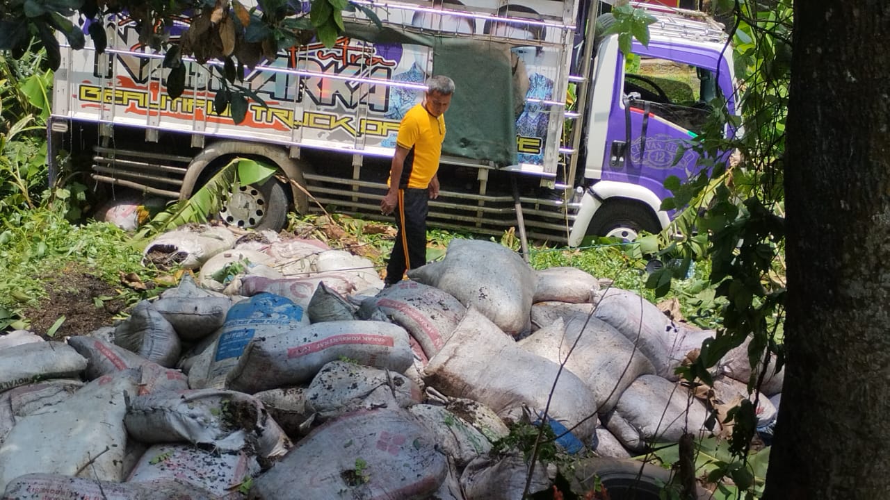 Tidak Kuat menanjak ,Truk Diduga Bermuatan Over Kapasitas Masuk Jurang Di Wilayah Hukum Polsek Cisaga