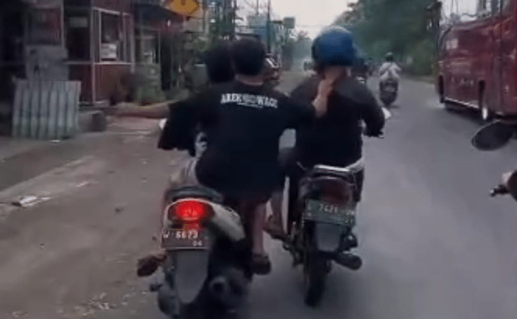 SIDOARJO – METROPAGINEWS.COM || Beredar video viral yang memperlihatkan dua pemuda berboncengan memukul pengendara lain dijalan pada hari sabtu 23/8, sekitar pukul 06:45 WIB di jalan Banjarkemantren – Gedangan.