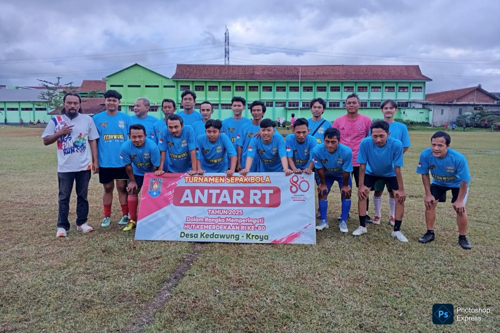 KROYA – METROPAGINEWS.COM || Dalam rangka memeriahkan peringatan Hari Ulang Tahun (HUT) ke-80 Republik Indonesia, Kelurahan Kedawung, Kecamatan Kroya, Kabupaten Cilacap menggelar Turnamen Sepak Bola Antar RT. Kegiatan ini resmi dimulai sejak 22 Juni 2025, dengan melibatkan 34 RT yang tersebar di seluruh wilayah Kelurahan Kedawung.