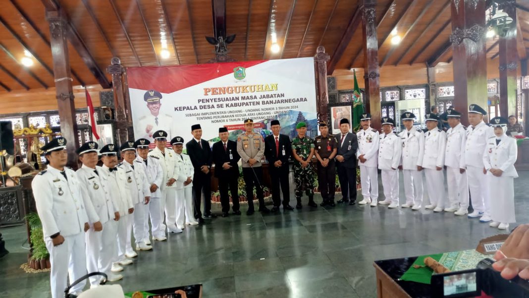 BANJARNEGARA-METROPAGINEWS.COM || Kepala Desa se-Kabupaten Banjarnegara semuanya menyambut dengan gembira setelah di kukuhkan masa Jabatannya oleh PJ Bupati Banjarnegara, atas di perpanjangnya masa jabatan selama dua tahun, yang bertempat di Pendopo Dipayudha Banjarnegara, pada hari Jum’at 21/06/2024.