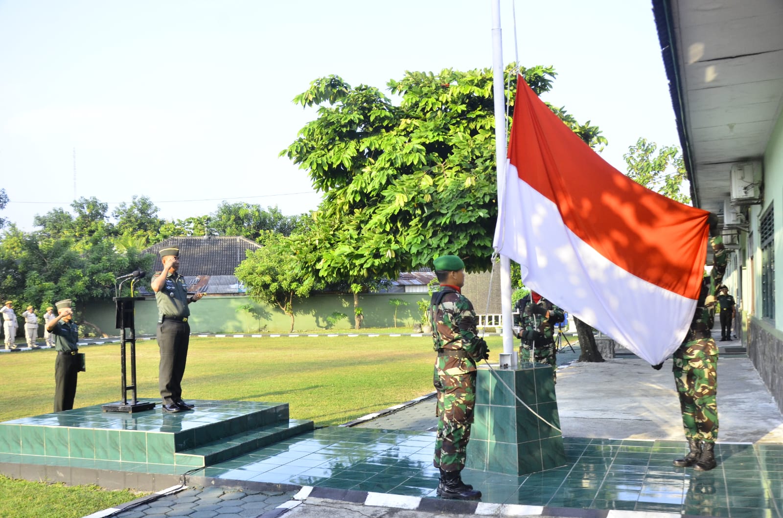 Bertindak selaku Inspektur Upacara Dandim 0735/Surakarta Letkol inf Devy Kristiono S.E,M.Si Sementara Danramil 05/Pasar Kliwon Kapten Inf Suwarto didaulat sebagai Komandan Upacara.