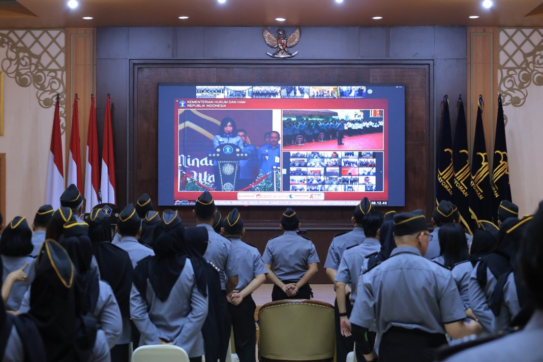 Min menyampaikan agar agenda – agenda strategis nasional yang menjadi prioritas bersama betul-betul dipastikan terselenggara dengan baik. Setidaknya ada lima poin penting yang harus diperhatikan jajaran Kemenkumham.