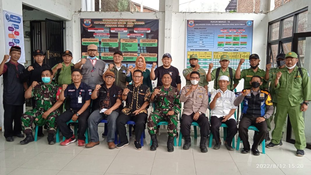 Cimahi – metropaginews.com || Sebagai upaya peningkatan keamanan di lingkungan masyarakat, Wakapolsek Cimahi Selatan, Polres Cimahi, AKP Heru Rustiono, Danramil 0908/Cimahi Tengah, Mayor Inf. Wastra, bersama Lurah Utama, Cepi Rustiawan, S.Pd., melaksanakan sistem Monitoring Siskamling di RW 16 Kelurahan Utama. Acara digelar di kantor Serba Guna RW 16, Jl. Mahar martanegara Kelurahan Utama kota Cimahi, Jumat (12/8/2022).