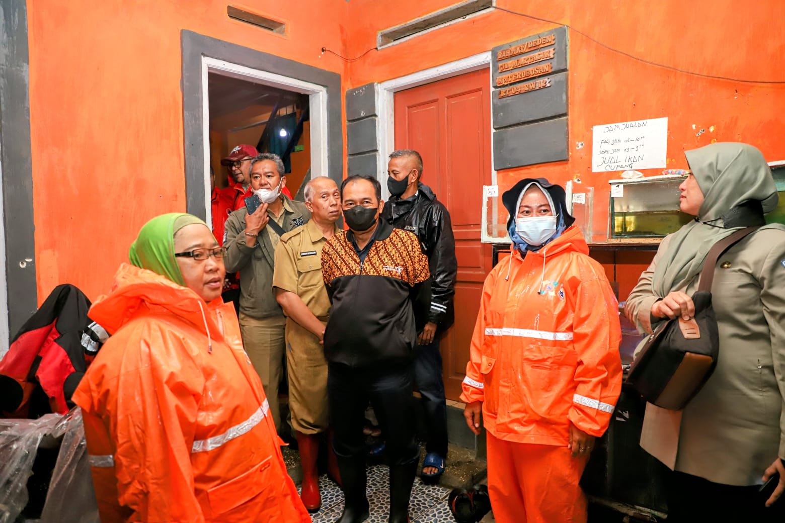 Wali Kota Cimahi, Letkol (Purn.) Ngatiyana didampingi Kepala Pelaksana Badan Penanggulangan Bencana Daerah (BPBD) Fithriandy Kurniawan, Camat Cimahi Utara, dan Lurah Cipageran, mengunjungi korban terdampak banjir di Kampung Torobosan RT 04 RW 12 Kelurahan Cipageran Kecamatan Cimahi Utara, Kota Cimahi.
