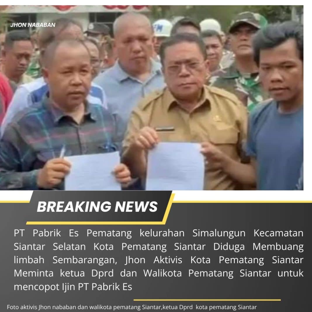 PEMATANG SIANTAR – METROPAGINEWS.COM || Warga Kelurahan Simalungun, Kecamatan Siantar Selatan, Kota Pematang Siantar, khususnya di sekitar kawasan Pematang, mengaku resah akibat dugaan pencemaran lingkungan yang berasal dari limbah PT Pabrik Es Pematang. Pematang