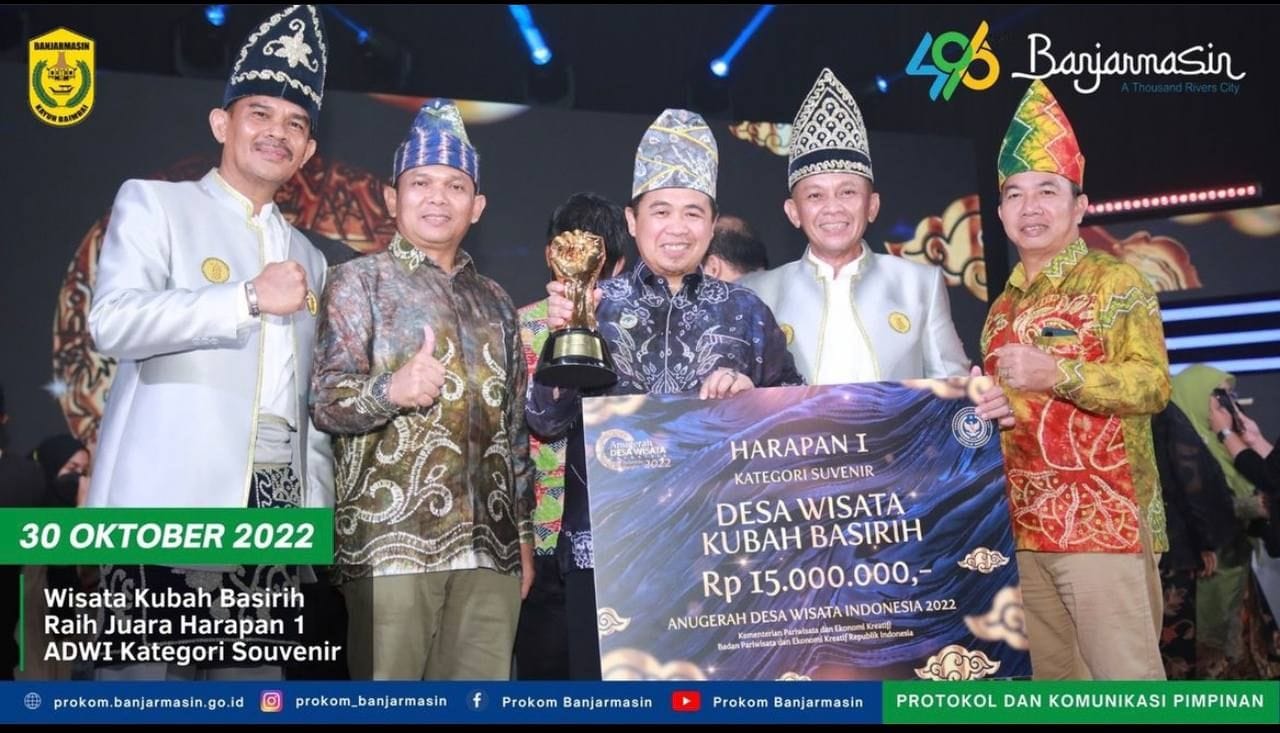 “Senang sekali malam hari ini kita meraih penghargaan 50 Desa Wisata Terbaik Anugerah Desa Wisata Indonesia perwakilan Kalimantan Selatan, Kubah Basirih, selamat dan sukses, kita masuk dalam kategori Harapan 1 untuk kategori souvenir,” ucapnya.
