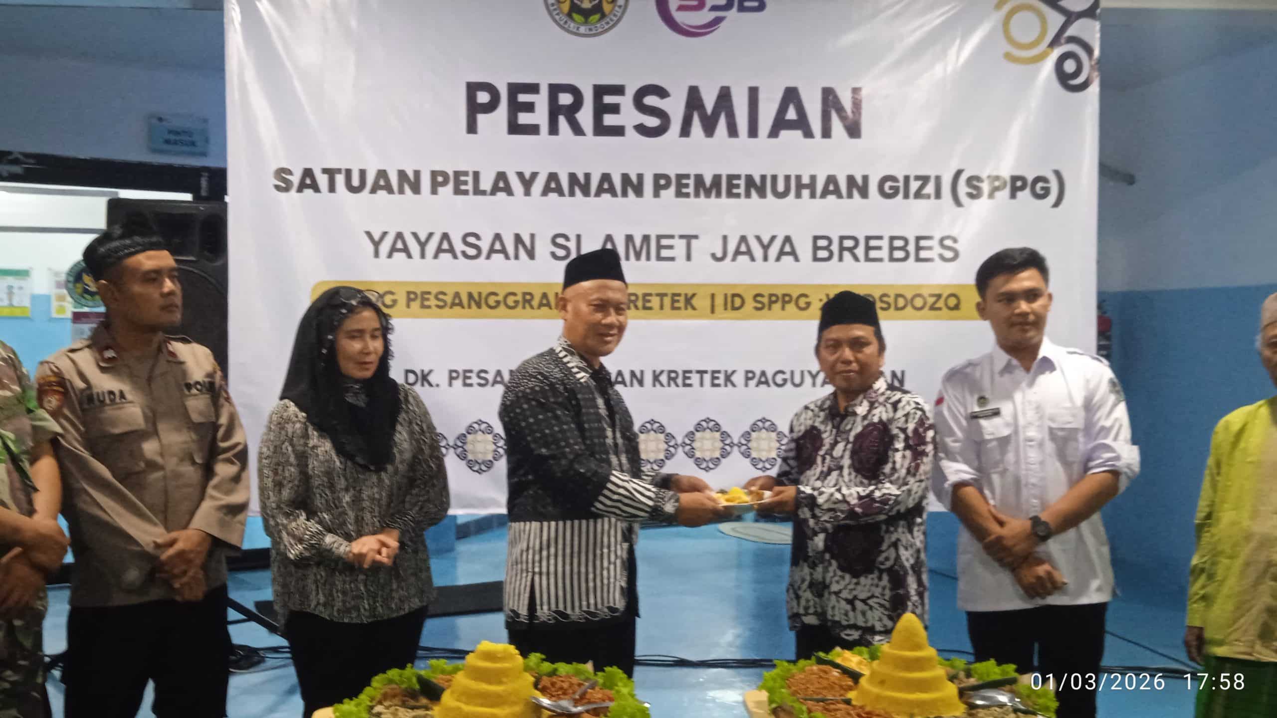 BREBES – METROPAGINEWS.COM || SPPG Brebes milik Yayasan Slamet Jaya Brebes resmi diresmikan di Dukuh Pesanggrahan, Desa Kretek, Kecamatan Paguyangan, Kabupaten Brebes, Minggu (1/3/2026).
